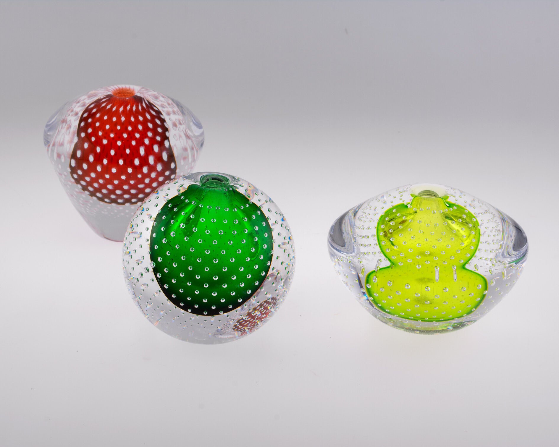 Alle objecten zijn ontstaan in de eigen glasblazerij van het Nationaal Glasmuseum in Leerdam